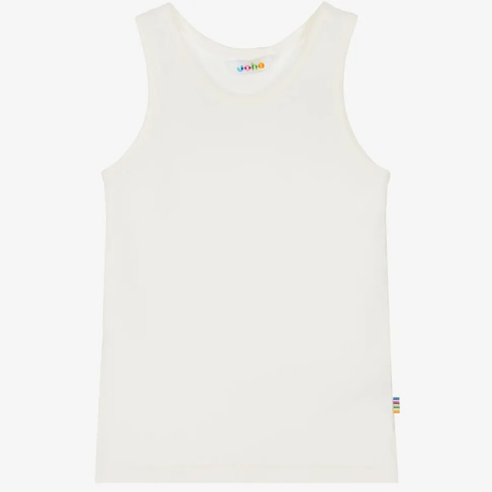 An ivory thermal vest top for boys and girls by Joha. Super soft and comfortable, it is made in a lightweight cotton and Merino wool blend.