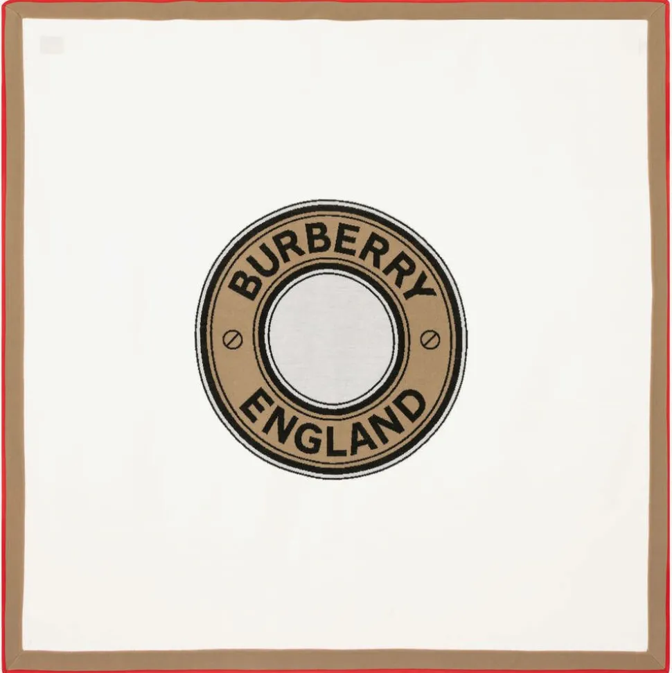 Luxurious ivory blanket for baby boys and girls from British brand, Burberry. Presented in a gift box, it is knitted in super soft Merino wool with a classic logo jacquard design, reflecting the House codes. It has simple ribbed trim in the brand's signature dark beige and red for a stylish finish.
