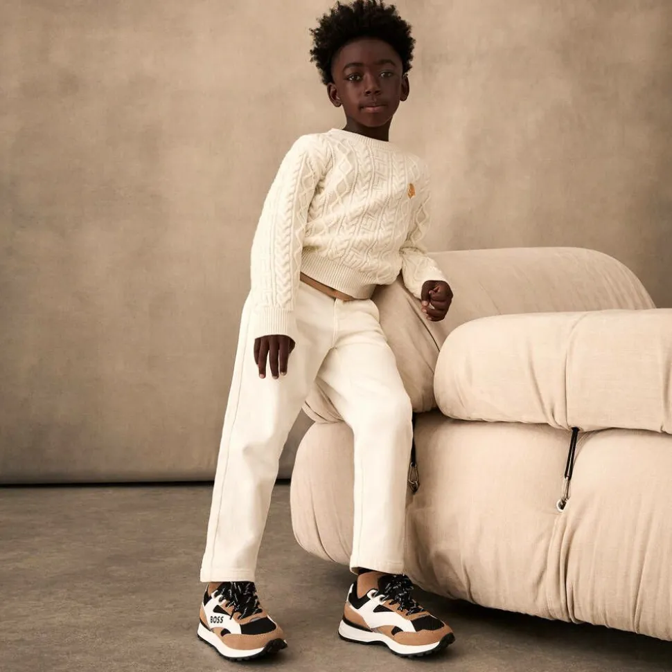 A pack of three ankle socks for junior boys by BOSS, in black, white and beige. Knitted in a soft cotton blend, each pair has a signature logo design on the ankle with colour-contrast stripes.