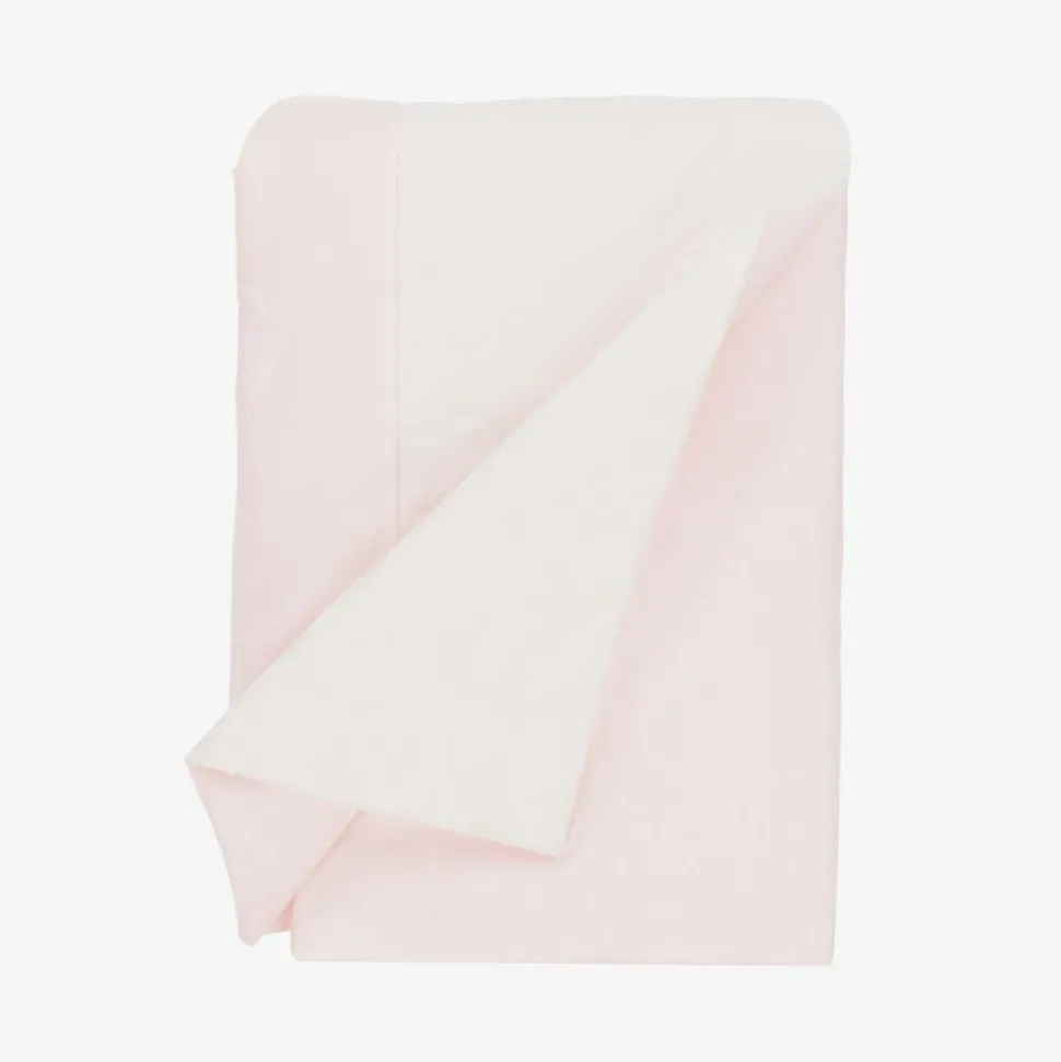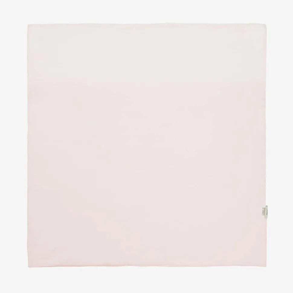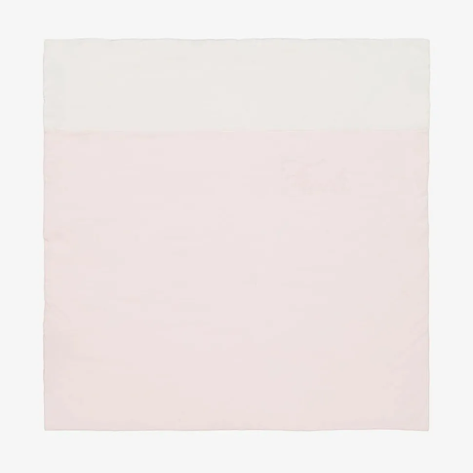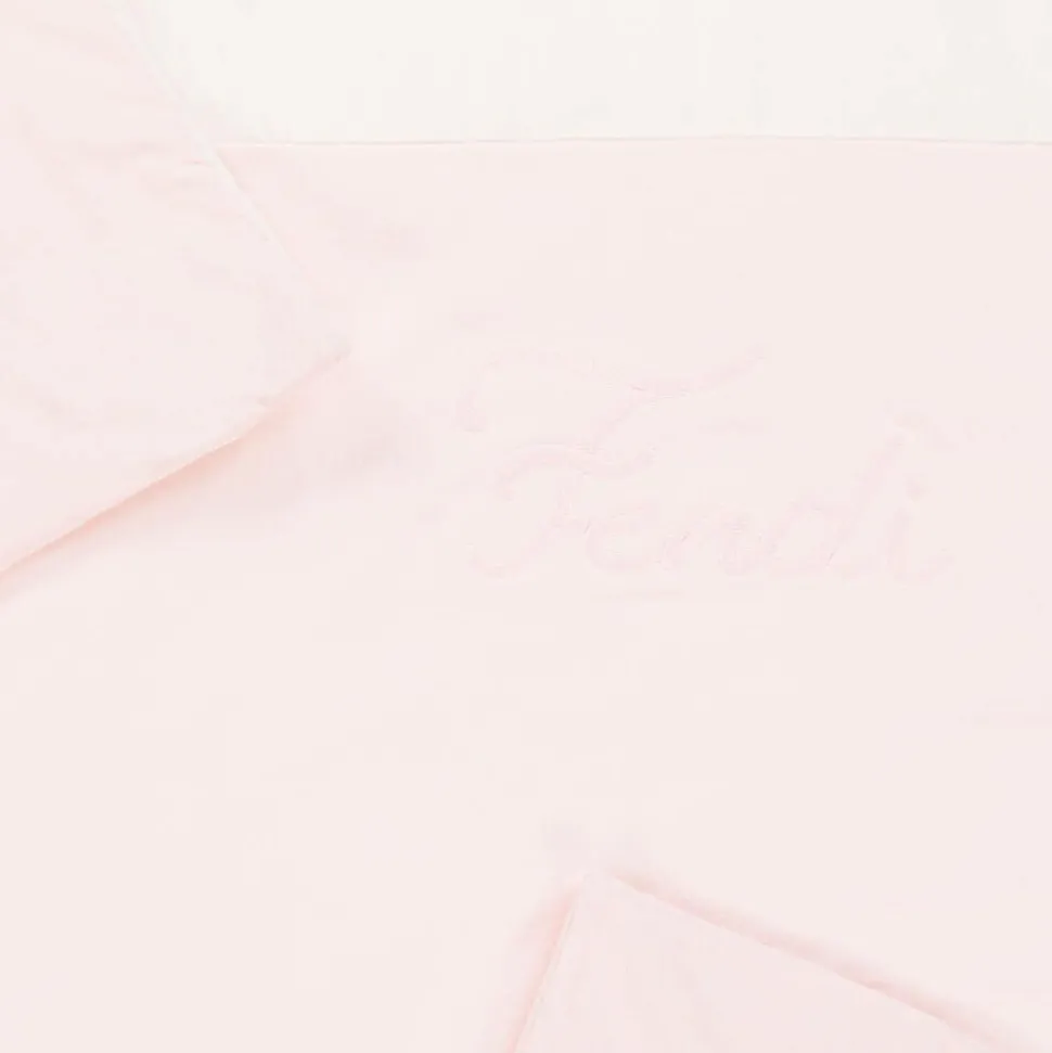 Pale pink padded blanket for baby girls by Italian luxury fashion house Fendi. Made in soft cotton jersey for a gentle feel against the skin, it has a white poplin panel and a tonal embroidered logo on one side. A versatile nursery accessory, the blanket's soft padding makes an ideal surface to lay baby on.