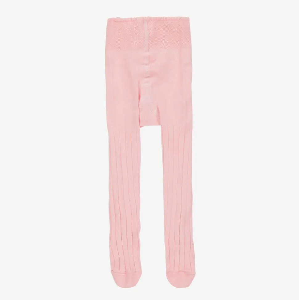 Pink ribbed tights for baby girls by Falke, made in soft cotton with a touch of cashmere for an added touch of luxury and warmth. These cosy tights have a wide cuff on the waist for a comfortable, pressure-free fit.