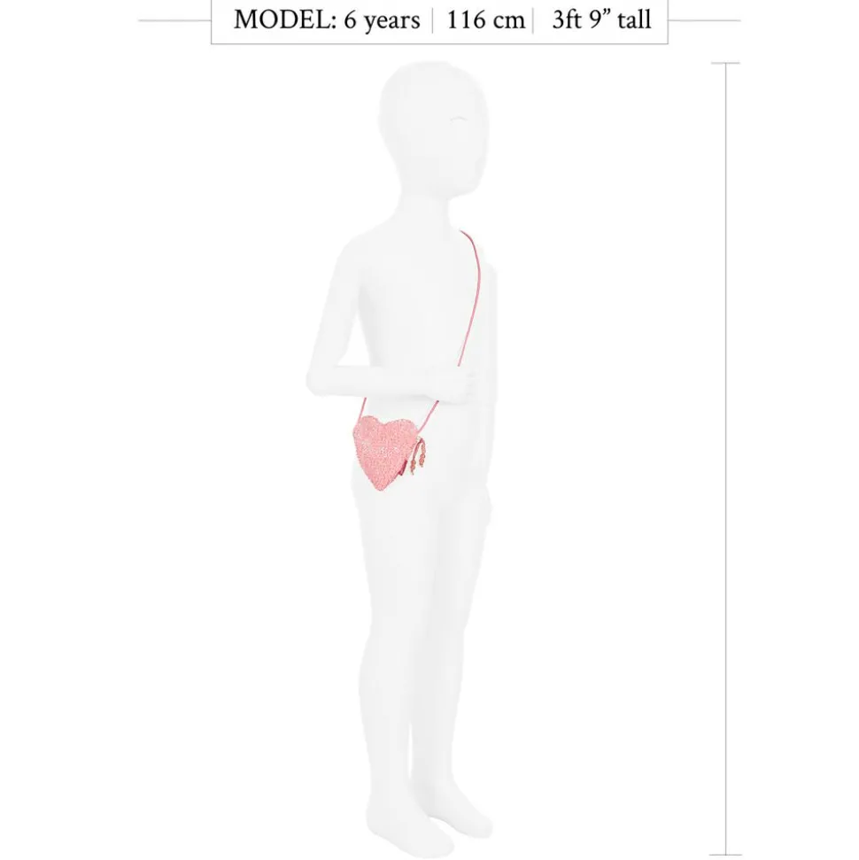 Girls pink sequin purse from Souza. The bag has a zip fastening with ribbon and bead decoration. The little shoulder bag is suitable for younger children, while older girls could wear it around the neck as a pretty, decorative purse. Our mannequin is the size of an average 6 year old.