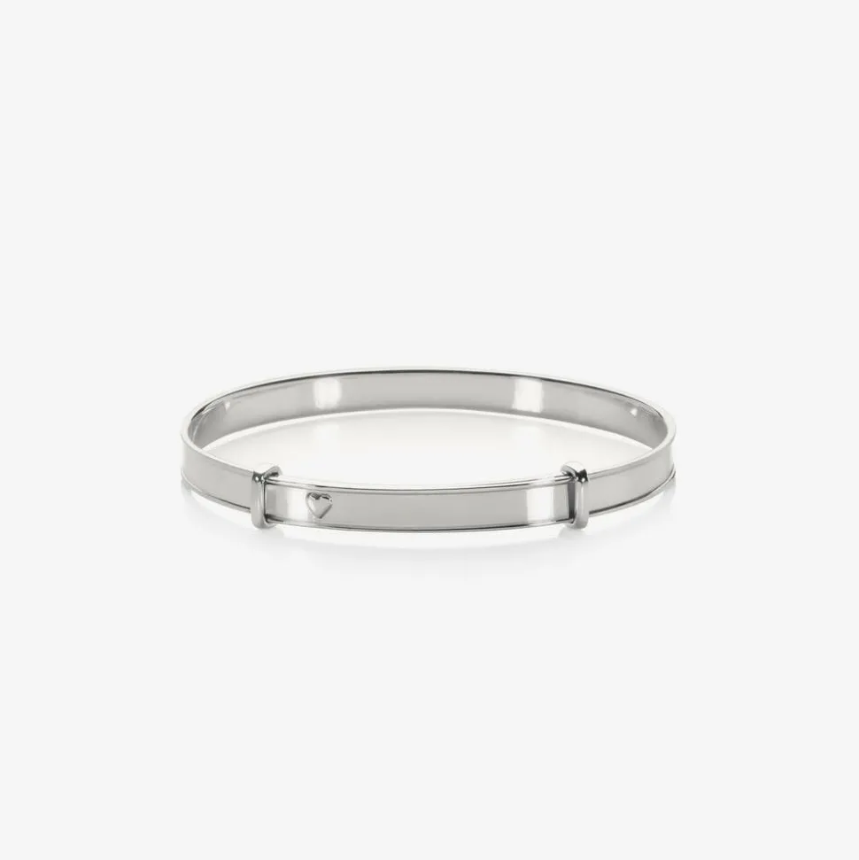 A delightful sterling silver bangle by Tales From The Earth, with an embossed heart as a reminder that your little one is always loved. Ideal for little wrists, this expandable design can be worn for years to come, making it a charming keepsake to cherish. Beautifully presented in a satin pouch and branded gift box, it makes a lovely special gift for a christening or birthday.