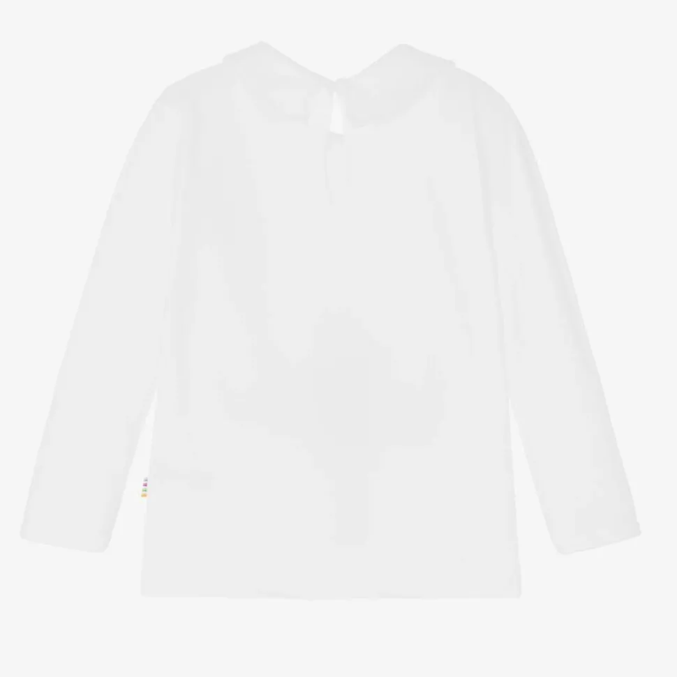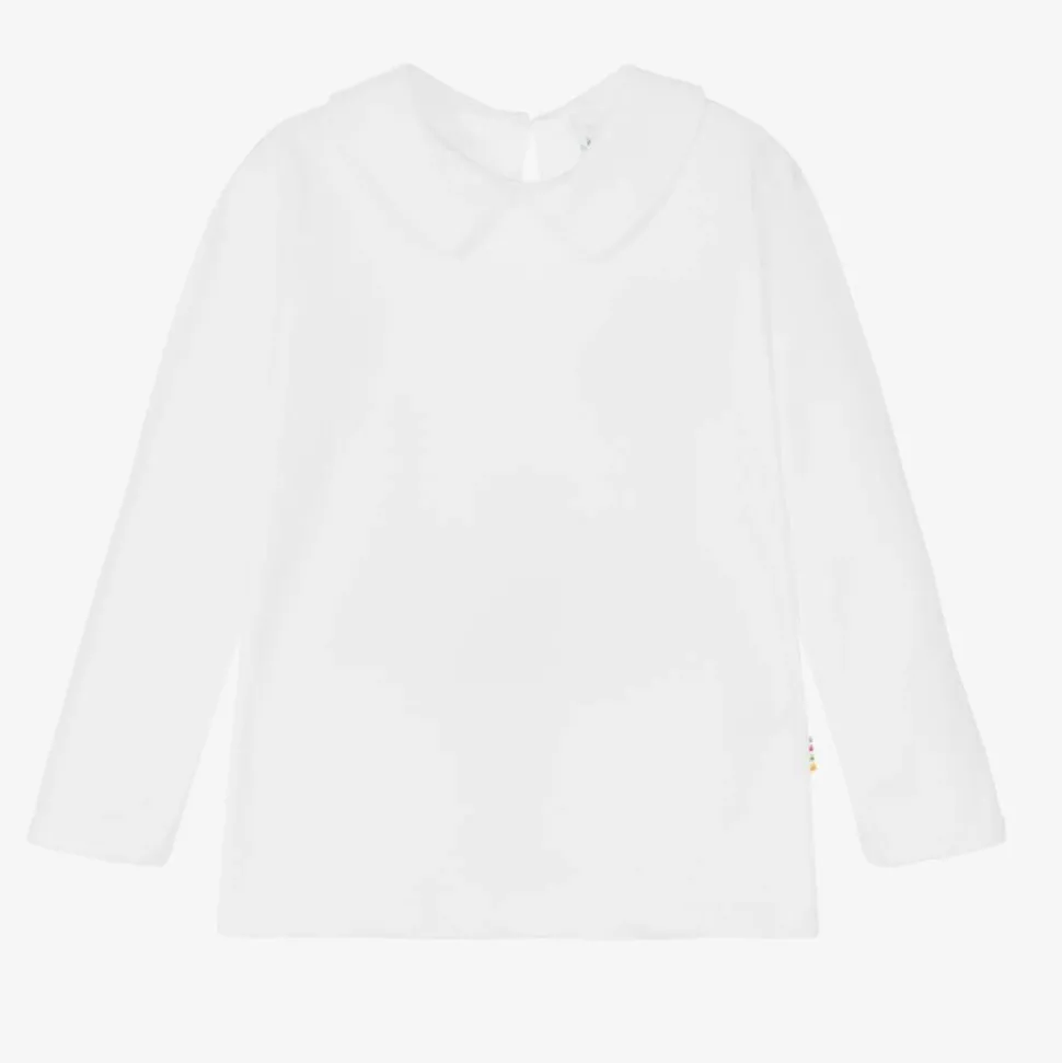 Lovely white top for little boys and girls, by Danish designer Joha. Made in soft organic cotton piqué, it has a traditional pointed collar, and fastens with a single button on the back.
