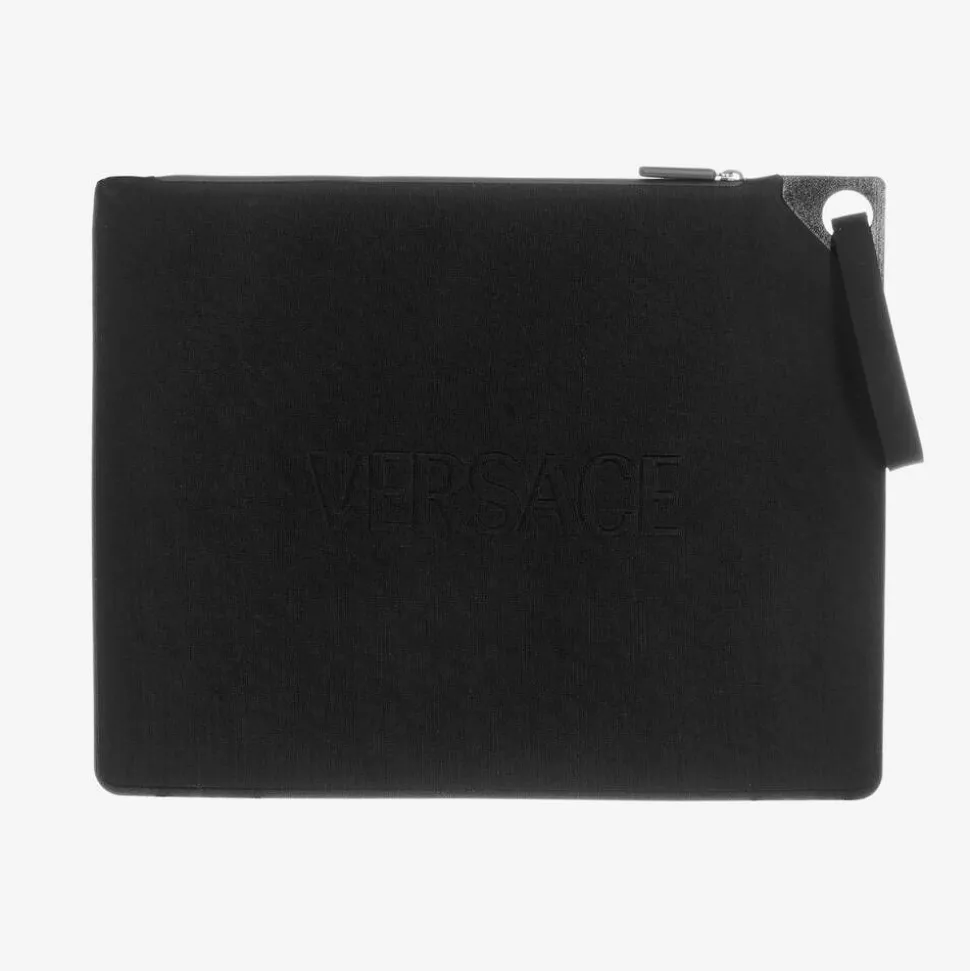 Pale blue swim shorts for baby boys by luxury Italian brand Versace, inspired by the main collection. Soft and smooth, they are patterned with a light beige starfish design and have a blue printed Medusa logo on one side for a signature finish. They have a patch pocket on the back, stretchy mesh lining, and a comfortable elasticated waistband.