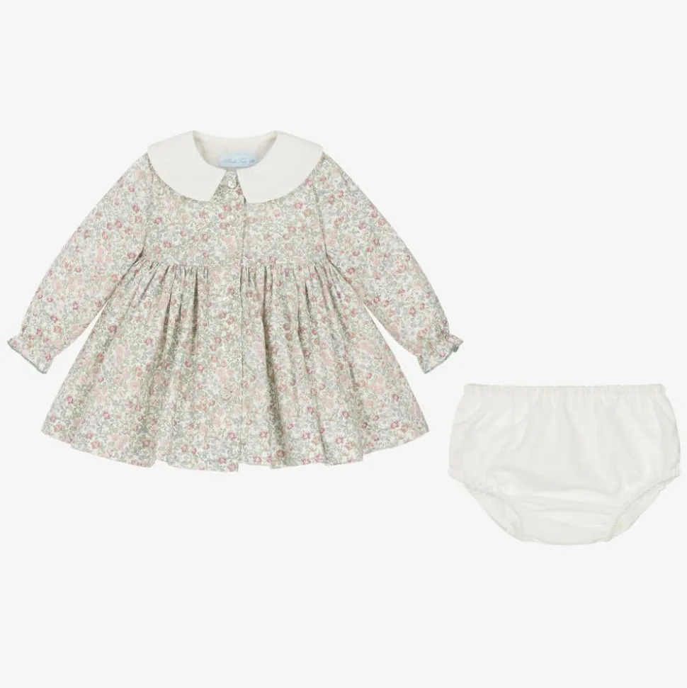 Baby Girls Ivory Floral Print Cotton Dress Set