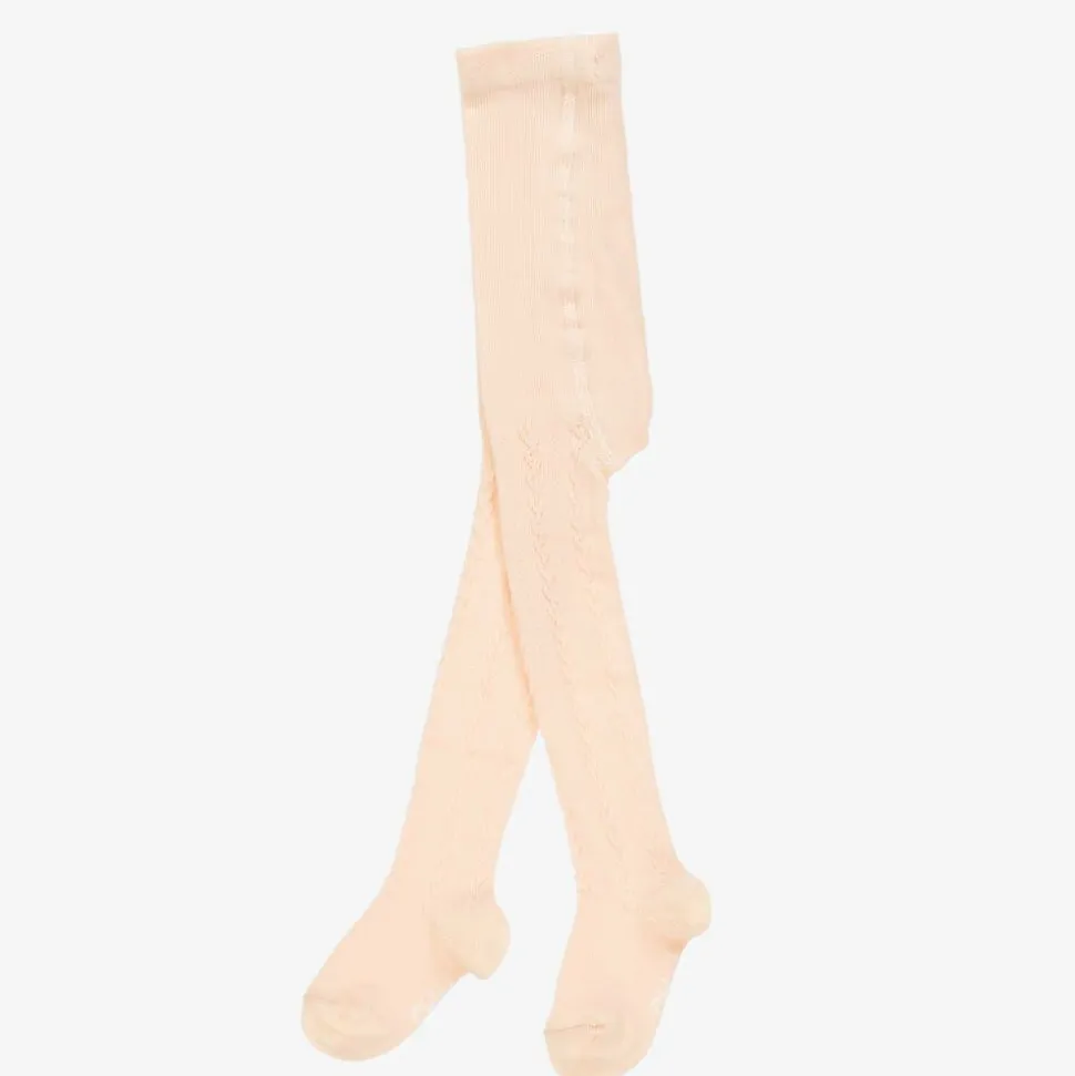 Lovely pastel pink tights for baby girls by luxury French brand ChloƩ, made in a soft and stretchy cotton blend. They have pretty patterned detailing on the legs, with signature ChloƩ branded on the soles.