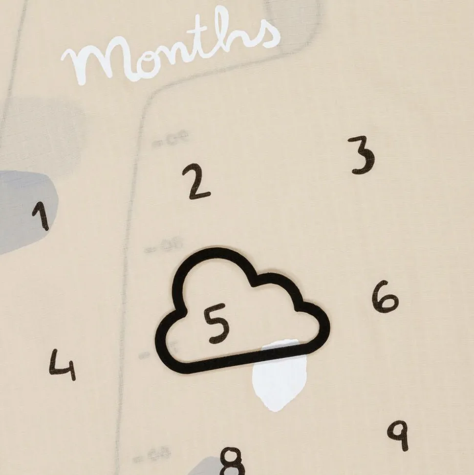An adorable set of beige and white cotton swaddles by Mayoral is an adorable way to make memories of your baby's first months and measurements. Printed with height and month markers, simply lay your little one on the soft muslin, and use the felt cloud shape to record their milestones in your photographs. Soft against delicate skin, both swaddles can be used for sleep time, as well as a burping cloth or nursing cover.