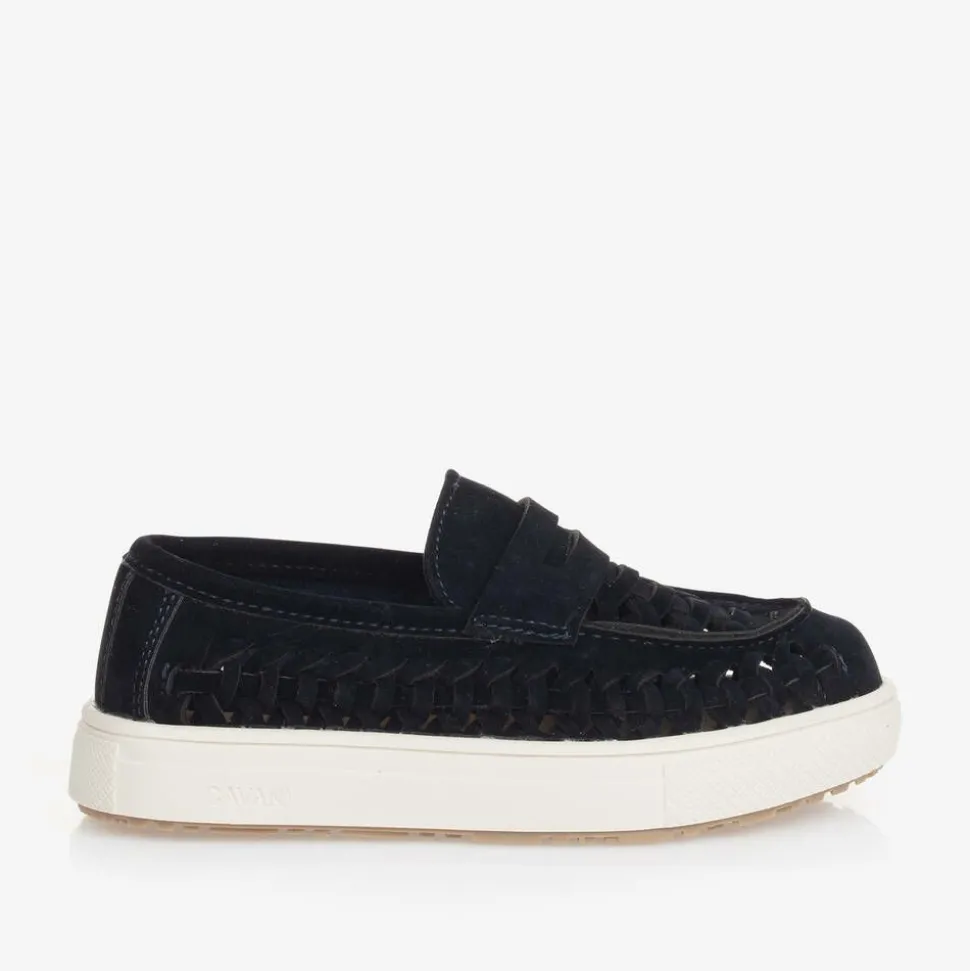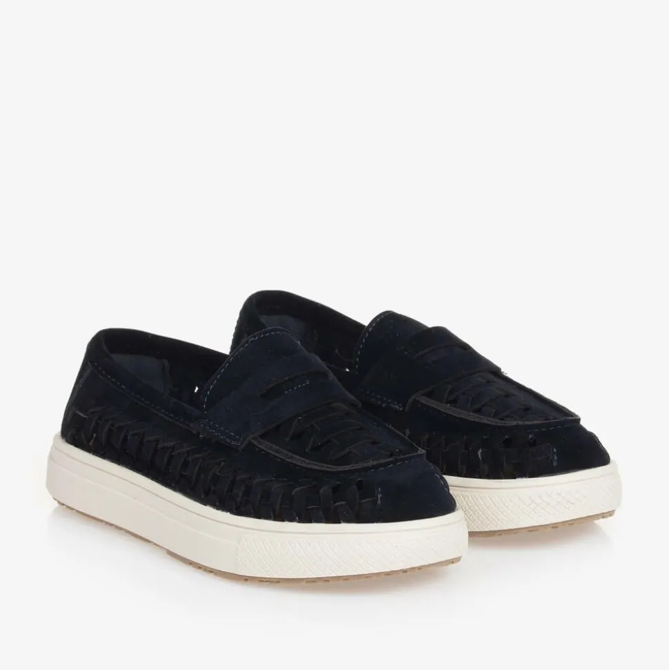 Navy blue loafers for boys by House of Cavani. In a stylish woven design, these slip-on shoes are made from faux suede leather. They have a lightly padded faux leather insole for added comfort and a thick ivory non-slip rubber outsole for good grip.