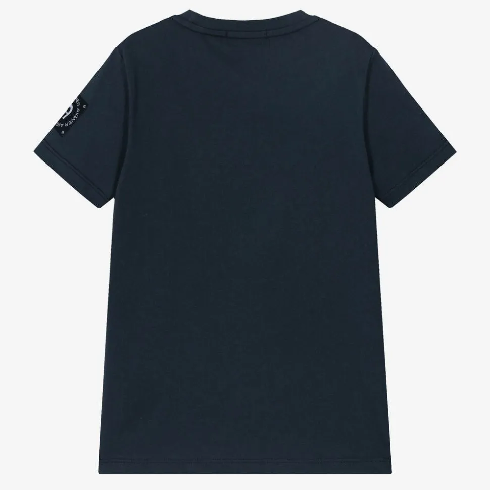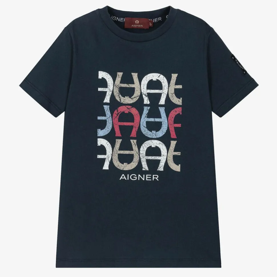 Casual navy blue T-shirt for boys by AIGNER, made in soft cotton jersey for comfortable wear. A colourful 'A' horseshoe logo design is printed on the front for a signature look.