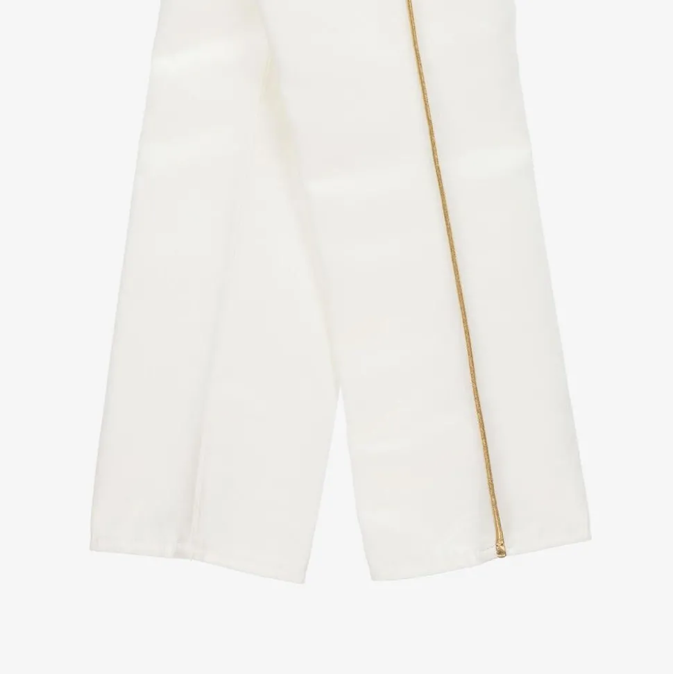 Ideal for special occasions, this smart military-style royal blue and ivory suit for younger boys is by Andreeatex. The long-line velvet jacket has a double-breasted front with golden button fastenings, embroidery detailing, braided epaulettes and trims. Simply pull-on, the ivory satin trousers have gold piping trims on the seams and an adjustable waistband. The long-sleeved cotton poplin shirt has a high collar and delicate lace trims on the elasticated cuffs. A matching velvet hat gives this outfit a complete look. The jacket, hat and trousers are fully lined in cotton for comfort.