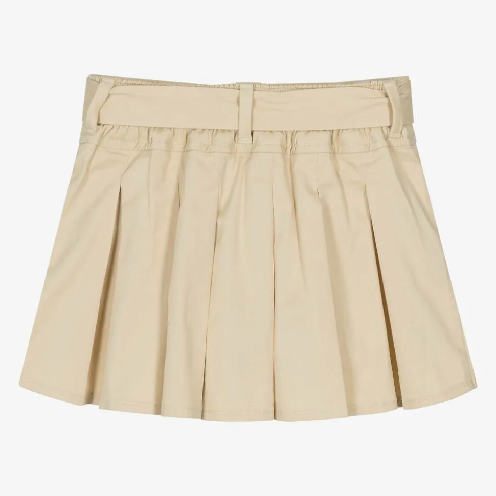 Girls Beige Cotton Pleated Skirt
