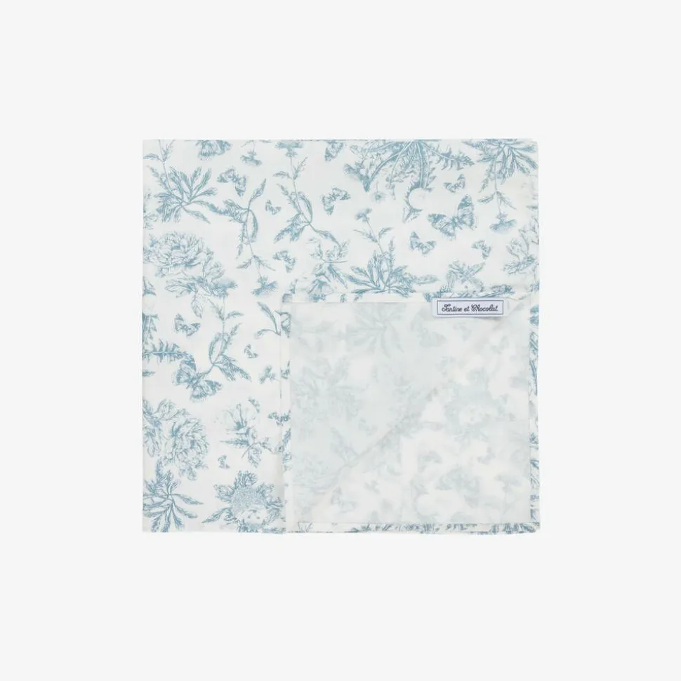 A white cotton scarf for girls from Tartine et Chocolat, patterned with an elegant Toile de Jouy print in a lovely shade of blue. Beautifully lightweight, this stylish accessory can be worn around the neck or over the head, adding a charming finishing touch to any outfit.