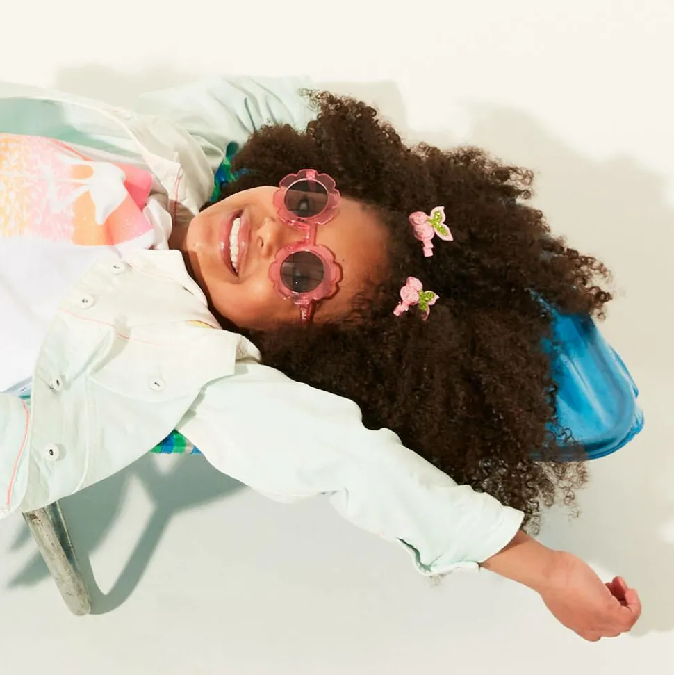 Cute pack of three, glittery red and pink fruit hair clips for girls by Bowtique London. The sparkly cherry and strawberry designs are set on easy slide-in metal clips.