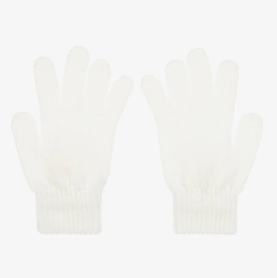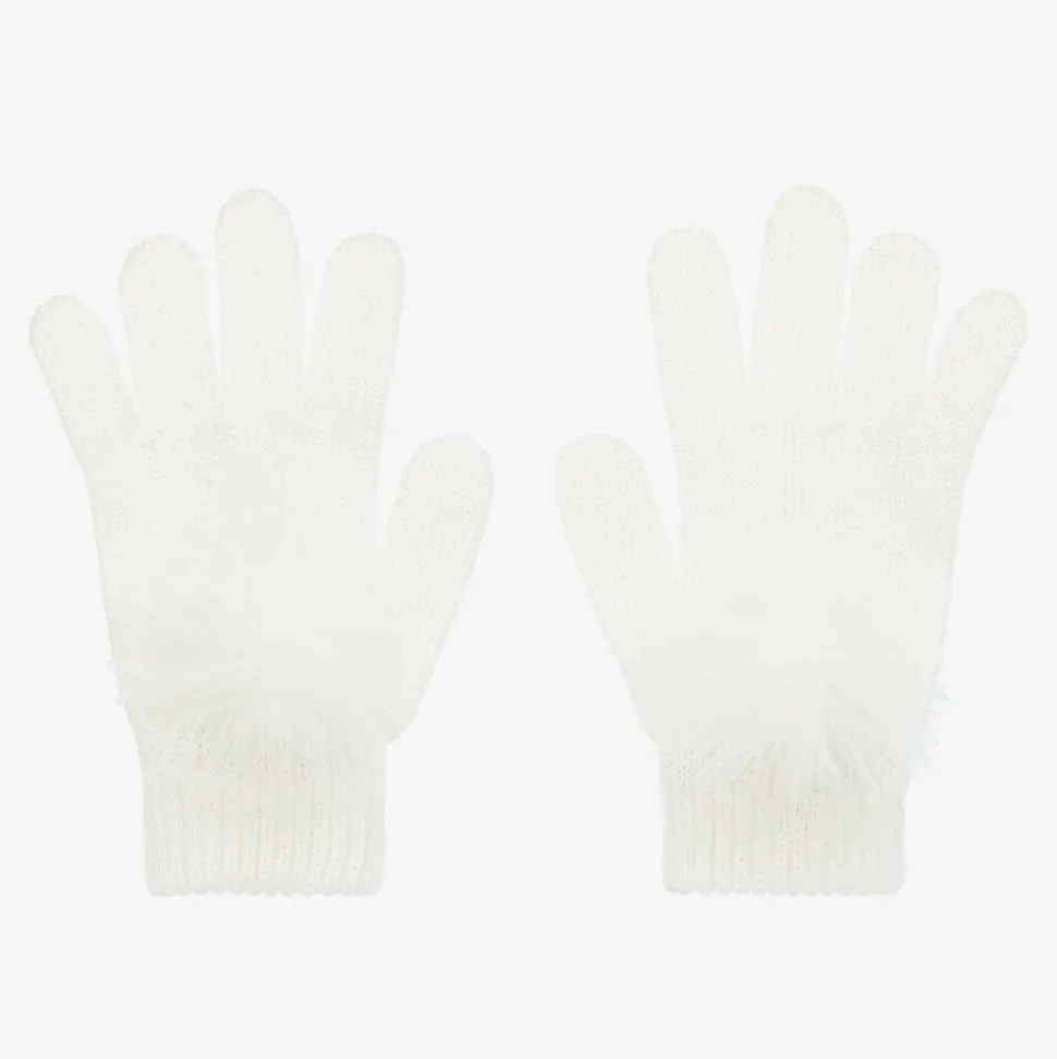 Girls Ivory Wool Knit Pom-Pom Gloves