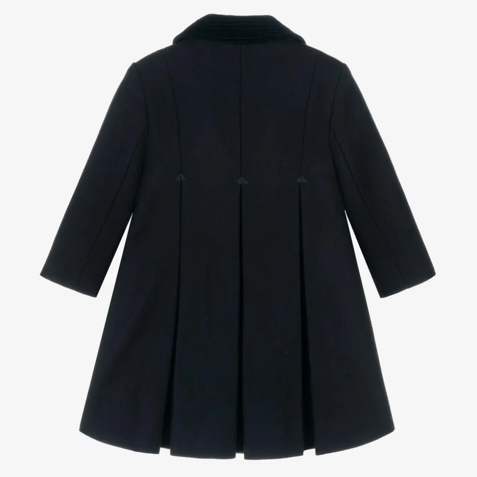 Girls Navy Blue Wool & Velvet Coat