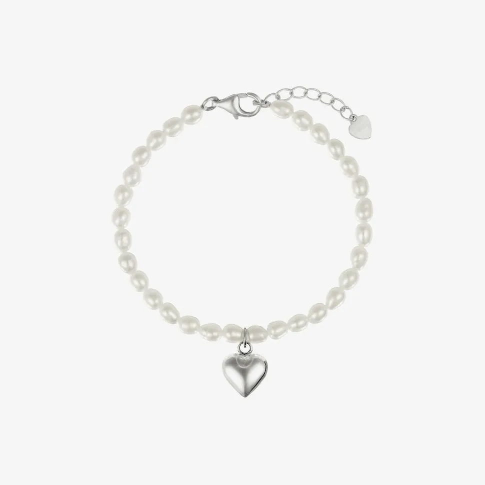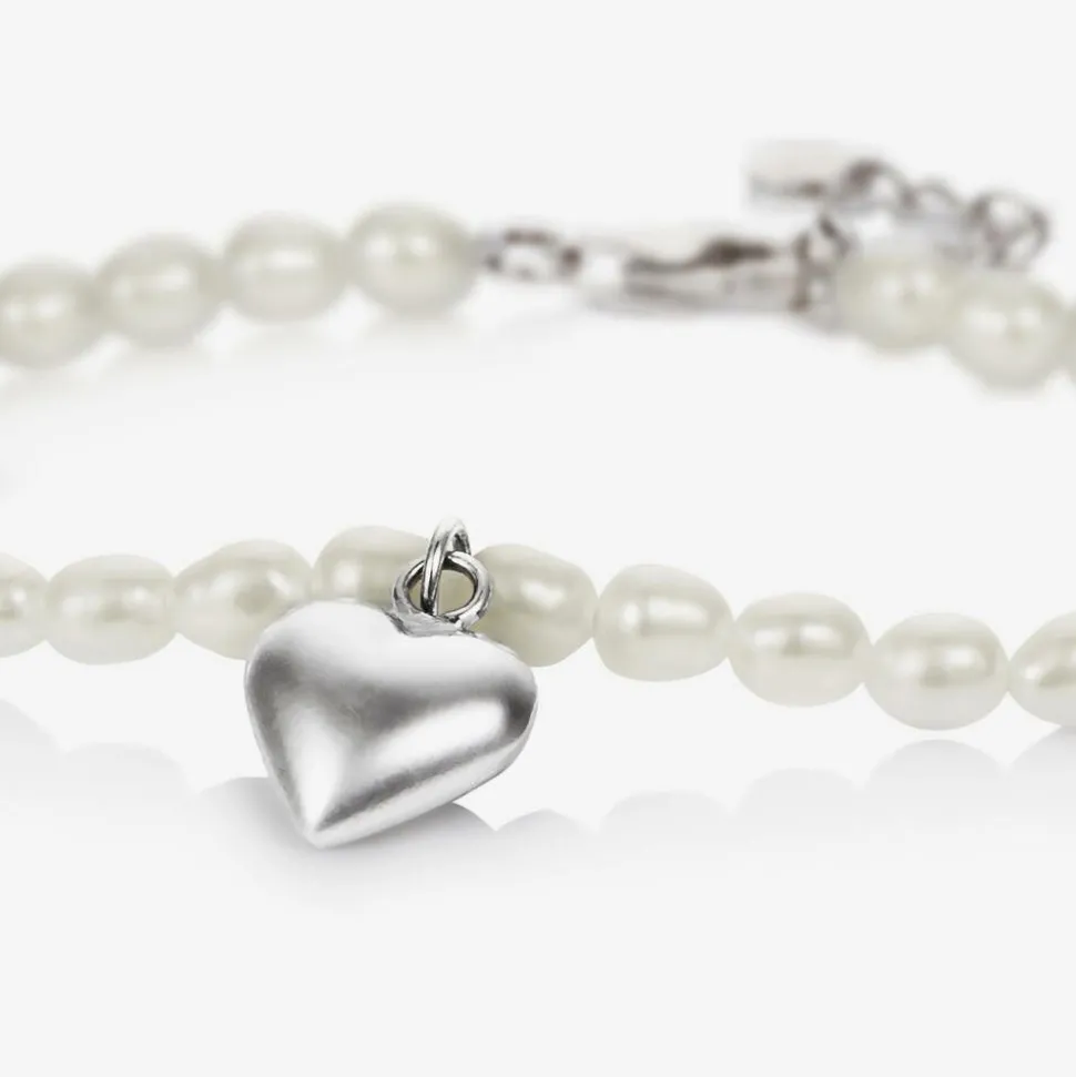A lovely freshwater pearl bracelet for girls by Tales From The Earth, detailed with a pretty silver heart charm. Ideal for little wrists, this dainty keepsake secures with an extendable clasp fastening. A delightful gift for a special little one, it is beautifully presented in a luxurious satin pouch and branded box.