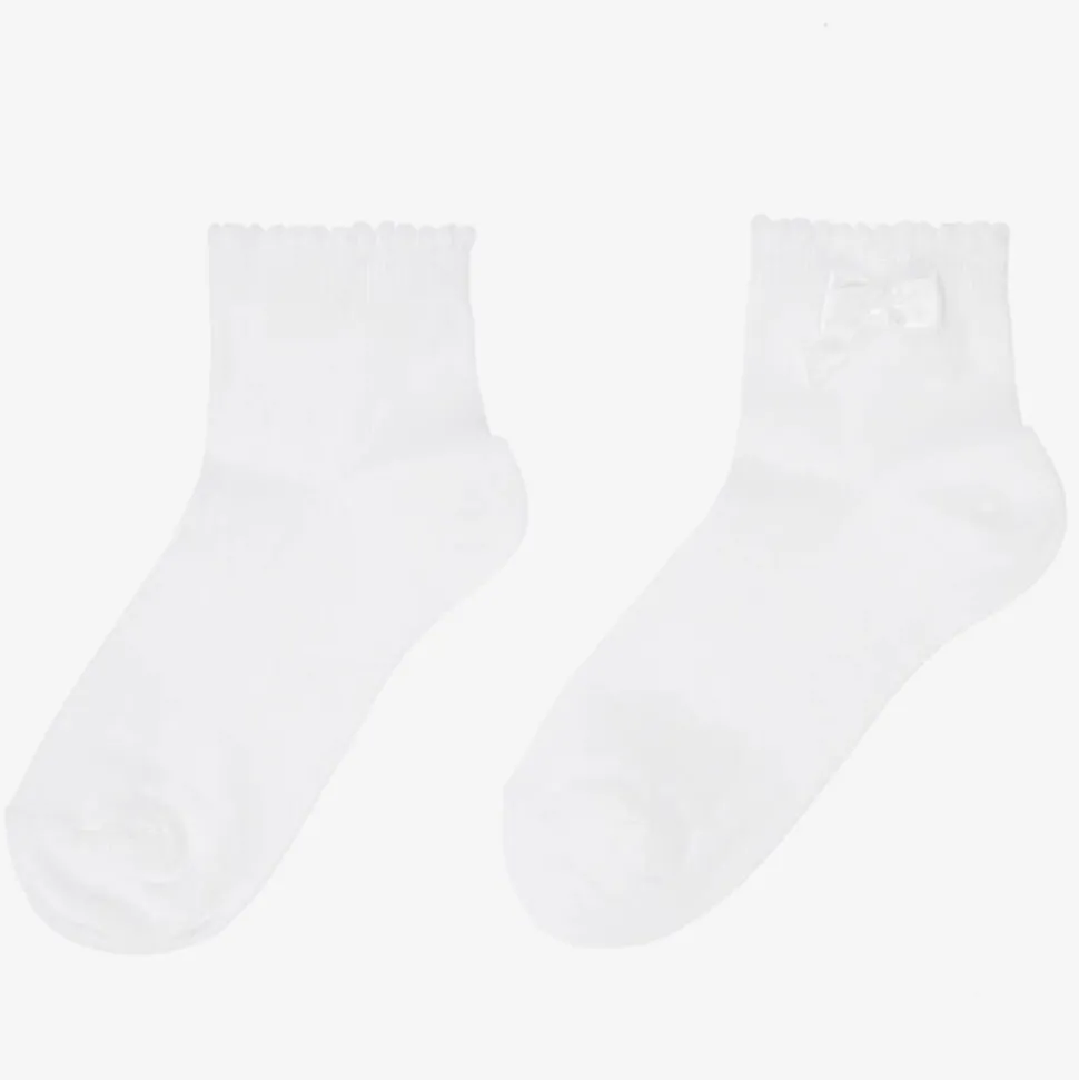 Girls White Bow Cotton Socks