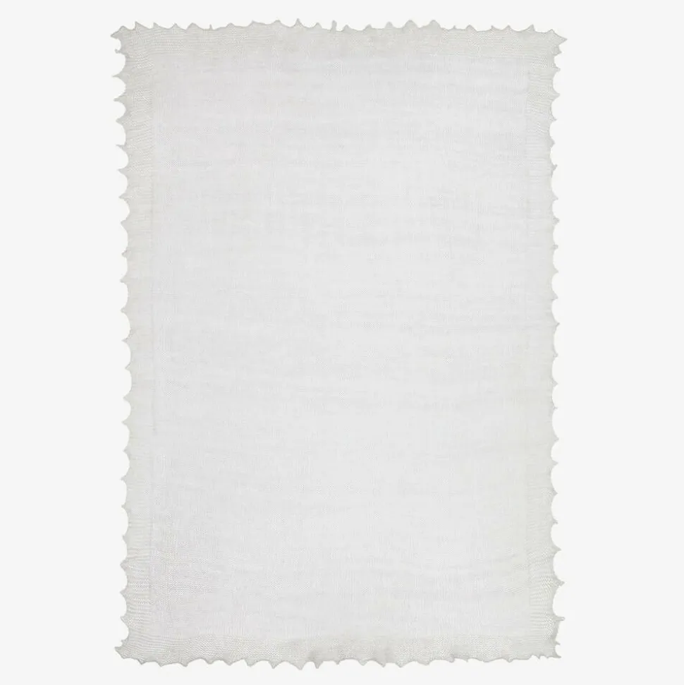 A beautiful gift hamper for baby boys and girls by English Trousseau, exclusive to Childrensalon. An ideal gift for new parents, it contains a pewter keepsake box, a silver-plated rattle and a wool shawl. There are two soft jersey bodyvests, three pairs of socks, two muslin cloths and a soft rabbit toy. All are presented in a white painted wicker basket with satin bows and grey fabric lining.