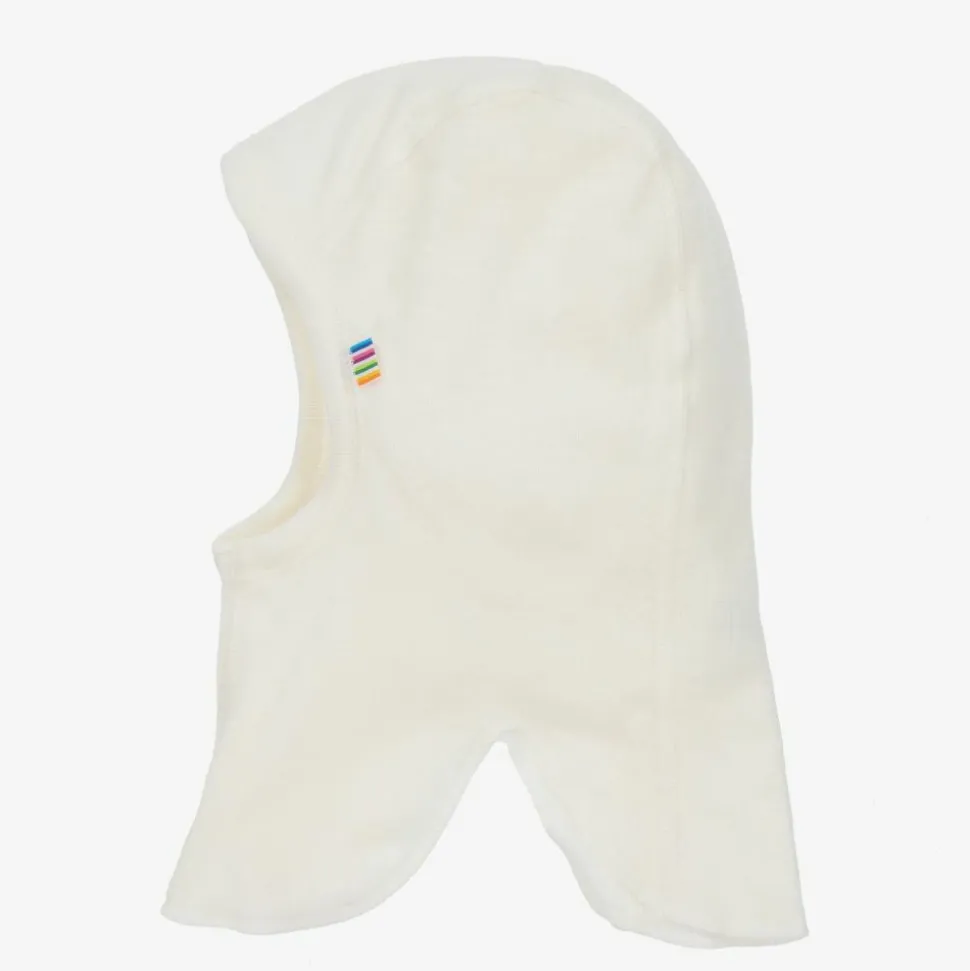 An ivory balaclava for little girls and boys by Joha. Soft and comfortable, it is made in a thermal, pure Merino wool jersey.