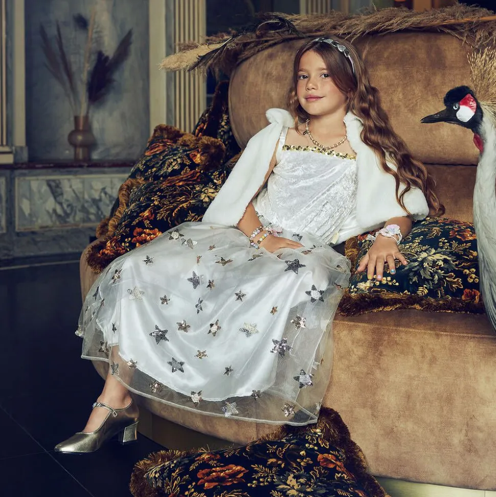 Super soft faux fur shrug style cape by Souza. This elegant off-white cape is just right for a little extra warmth and is ideal for a special occasion. It has a satin lining and fastens with a pretty pearl button and loop.